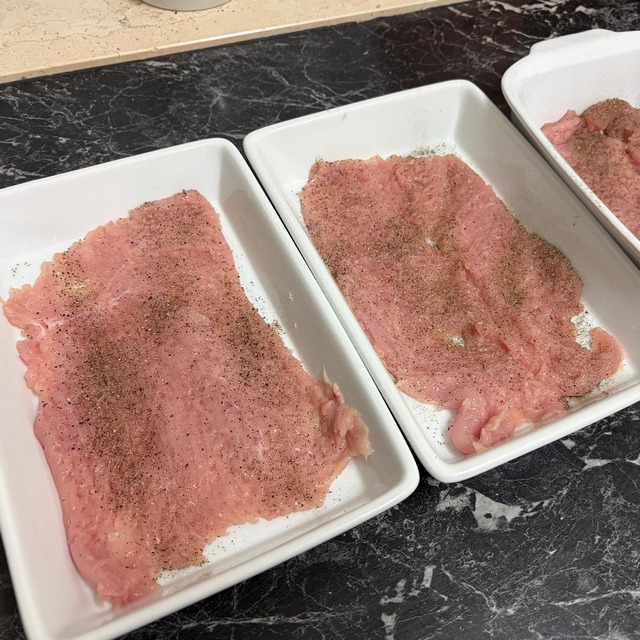 • Die Puten/Hähnchenschnitzel flachklopfen