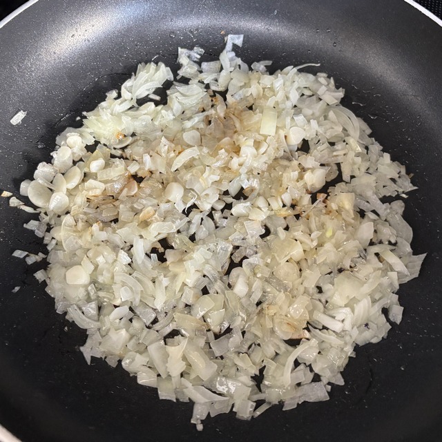 • Etwas Öl in der Pfanne erhitzen und die Zwiebeln mit dem Knoblauch leicht andünsten