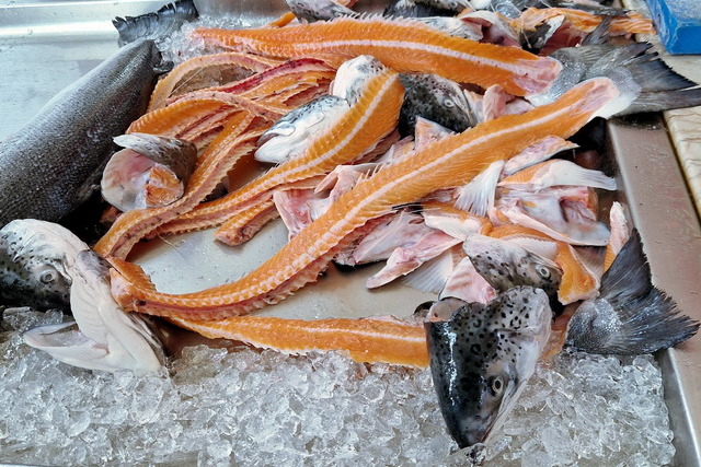 Im Keller der Markthalle, wo frisches Fleisch und Fisch angeboten werden, gibt es mehrere kleine Minilokale. Diese sind ein Geheimtipp für jeden, der frischen Fisch direkt und authentisch zubereitet genießen möchte. Dank eines früheren Besuchs wussten wir genau, welches Lokal wir ansteuern wollten und wurden nicht enttäuscht. Der Duft frisch gebratenen Fischs, die Herzlichkeit der Betreiber und die lebhafte Atmosphäre machten das Essen zu einem unvergesslichen Erlebnis.
