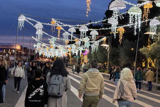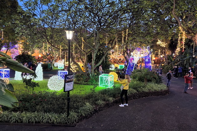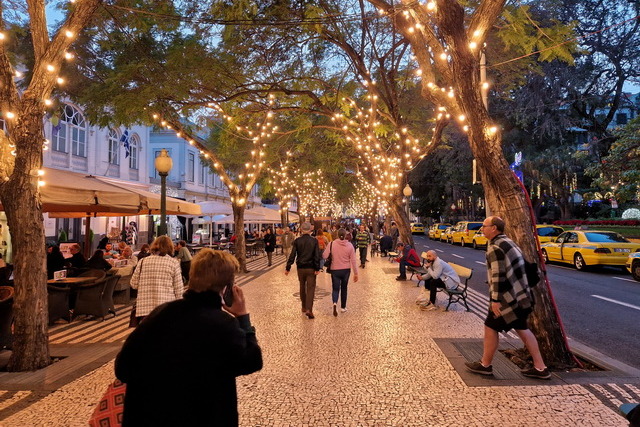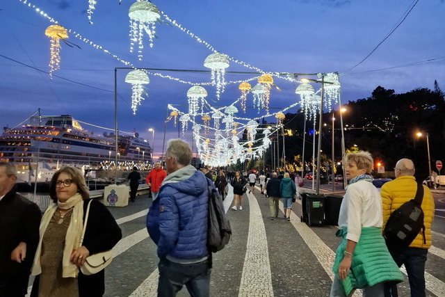 Gegen 17 Uhr gingen wir ein zweites Mal in die Stadt um nun das weihnachtliche Lichtspektakel bewundern zu können. In der Stadt war mittlerweile der Teufel los. Überall Einheimische bereits gut gekleidet für den Silvesterabend. Die Damen zum Teil im langen Kleid und die Herren im dunklen Anzug. So flanierten alle, Touries und Einheimische, durch die Straßen und genossen das muntere treiben in der Stadt.