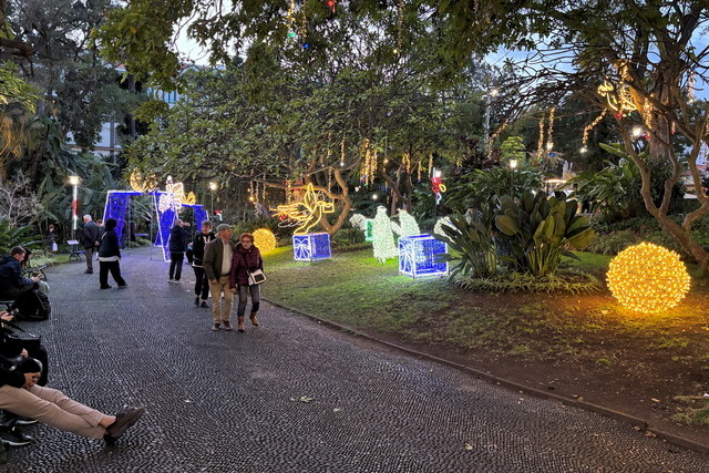 Die Stadt präsentierte sich auch dieses Mal von ihrer besten Seite und zeigte sich, wie wir in den kommenden Tagen auf unserer Rundreise auch bei anderen Städten der Kanarischen Inseln feststellen sollten, noch immer in festlichem Weihnachtsglanz. Überall waren weihnachtliche Dekorationen zu sehen, die einen besonderen Charme versprühten. Im Stadtpark bewunderten wir verschiedene Motive, die aus kunstvoll arrangierten Lichterketten bestanden. Allerdings konnten diese bei Tageslicht ihre volle Wirkung nicht entfalten. Dennoch ließ sich erahnen, wie zauberhaft die Atmosphäre am Abend sein musste, wenn all die Lichter erstrahlten und die Stadt in ein warmes, festliches Licht tauchten.