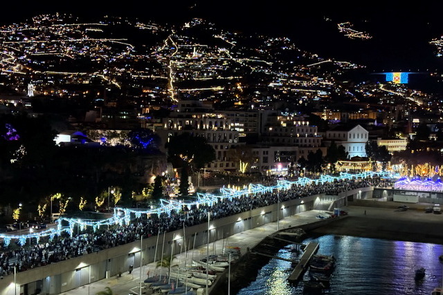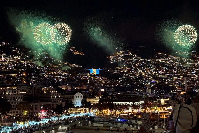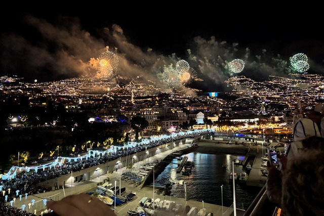 Trotzdem ließen wir uns die Stimmung nicht verderben. Pünktlich um 23:30 Uhr begaben wir uns auf Deck 10 an die Reling, um das Highlight des Abends zu genießen: das Feuerwerk über Funchal. Der Ausblick war atemberaubend. Die Stadt präsentierte sich in einem Meer aus Lichtern und das Feuerwerk, das laut unserem Kapitän mit einem Budget von einer Million Euro jährlich organisiert wird, war schlicht überwältigend. Diese Summe schien keineswegs übertrieben, angesichts der spektakulären Show, die den Nachthimmel erleuchtete.