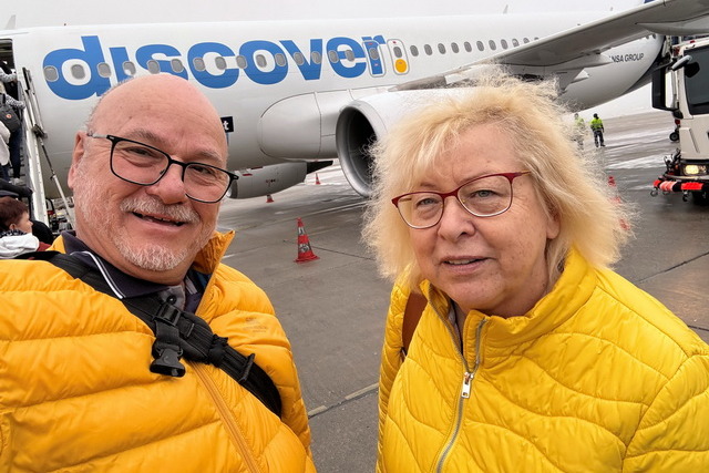 Die Anreise verlief problemlos. Mit dem Taxi und der Bahn erreichten wir pünktlich den Flughafen Frankfurt. Auch der Check-in und die Sicherheitskontrolle liefen reibungslos. Als wir jedoch endlich im Flugzeug saßen, kam die Ansage: Die Tragflächen und Triebwerke mussten enteist werden. Das bedeutete zwei Stunden Wartezeit auf dem Rollfeld. Der Flug nach Gran Canaria verlief ansonsten ohne Zwischenfälle, und der Transfer zum Schiff war effizient organisiert.