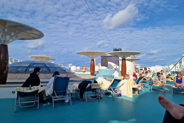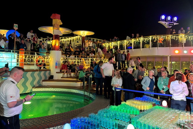 Wie auf jeder AIDA-Fahrt gab es gleich am ersten Abend die beliebte „Sail-Away“-Party auf dem Pooldeck. Schon beim Betreten des Bereichs war die fröhliche und ausgelassene Stimmung spürbar, die diese Veranstaltung so besonders macht. Bei den Klängen der AIDA Auslaufmusik von Enya (Orinoco Flow), fuhren wir aus dem Hafen von Gran Canaria, unserem ersten Ziel Madeira entgegen.