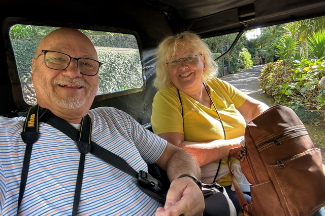 Am unteren Ende des Parks angekommen, standen uns zwei Möglichkeiten offen: Entweder weiter Richtung Funchal zu gehen oder den Rundweg zurück zur Bergstation zu nehmen. Zu unserem Glück entdeckten wir ein auf Oldtimer gemachtes Fahrzeug, das uns für nur 10 Euro durch den Park zurück zur Bergstation brachte. Diese Fahrt war nicht nur praktisch, sondern auch eine nette Ergänzung unseres Ausflugs.