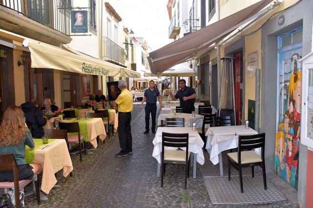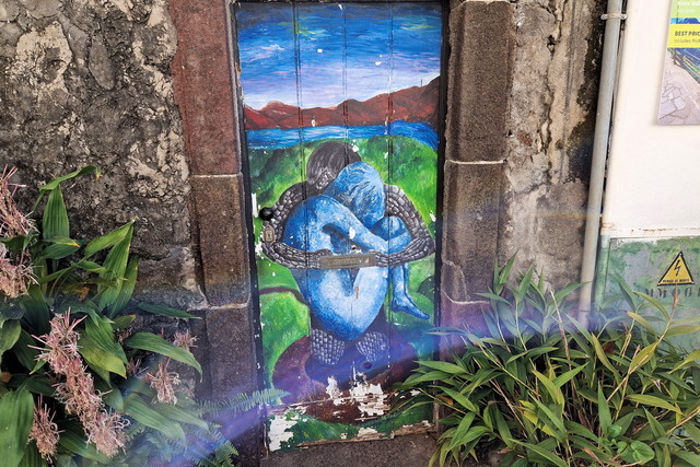 Da wir bereits in der Mittagszeit wieder in der Stadt waren und die Seilbahn direkt in einem alten Stadtteil von Funchal endete, nutzten wir die Gelegenheit, eine Runde durch diesen Teil der Stadt zu drehen. Besonders beeindruckend waren die sehr schön bemalten Hoftore, die diesem Stadtteil einen ganz besonderen Charme verliehen. Jedes Tor war ein kleines Kunstwerk für sich, das von der Kreativität und Kunstfertigkeit der Bewohner zeugte.