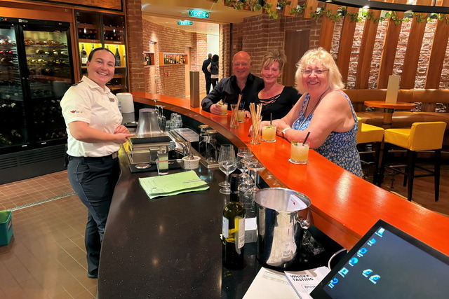 Wie fast in jedem AIDA-Urlaub war auch dieses Mal die Teilnahme an der „Tour de Bar“ ein fester Bestandteil unserer Reise. Für diese Tour hatte sich neben uns lediglich ein weiteres Pärchen angemeldet. Die kleine Gruppe tat dem Erlebnis jedoch keinen Abbruch. Im Gegenteil: Die kleine Runde sorgte für eine besonders entspannte und persönliche Atmosphäre.