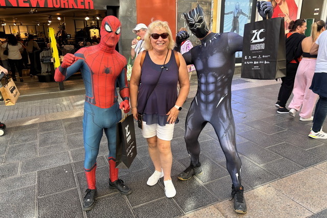Auf dem Rückweg zum Schiff wartete noch eine Überraschung auf uns: Zwei junge Männer, verkleidet als Spiderman, liefen durch die Straßen und machten Werbung für ein Geschäft. Ihre bunten Kostüme und ihre Energie brachten uns zum Lachen und rundeten unseren Tag in Santa Cruz auf humorvolle Weise ab.