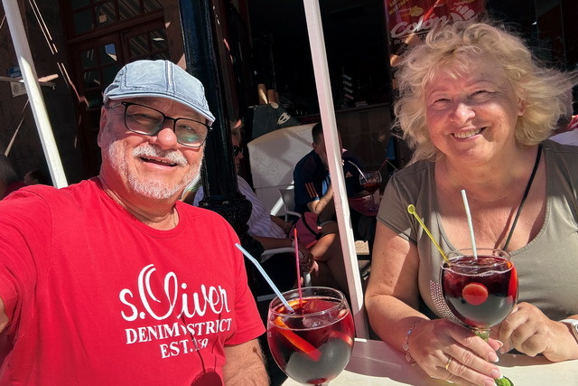 Wir hatten jedoch die Tatsache unterschätzt, dass wir uns nun deutlich näher am Äquator befanden und es hier deshalb wesentlich später dunkel wurde als in Deutschland. Um die Zeit bis zum Sonnenuntergang sinnvoll zu überbrücken, suchten wir das Hotel/Restaurant Ritz auf. Dieses wunderbare alte Haus, das bereits 1905 eröffnet wurde, liegt direkt am Stadtpark und besitzt ein charmantes, ganzjährig geöffnetes Außenlokal in der Fußgängerzone. Dort ließen wir uns nieder und genossen die entspannte Atmosphäre bei einer herrlichen, weißen Sangria.