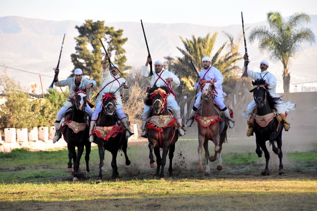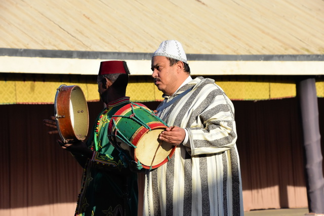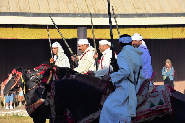 Akrobaten, Tänzer und Musiker zeigten ihr Können, während wir von der Energie und Lebendigkeit der Darbietungen mitgerissen wurden. Ein besonderes Highlight waren jedoch die Reiter. Vier Männer galoppierten auf prachtvollen Pferden direkt auf die Zuschauer zu, bewaffnet mit Vorderladern. Im letzten Moment zügelten sie ihre Pferde und feuerten eine ohrenbetäubende Salve ab. Der donnernde Lärm und die spektakuläre Präzision der Reiter sorgten für ein echtes Gänsehaut-Erlebnis.