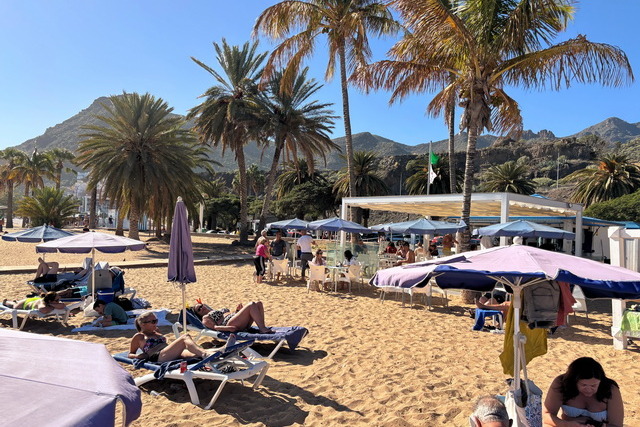 Unser letzter Reisetag führte uns noch mal nach Teneriffa und auch hier verbrachten wir den ganzen entspannt am Strand. Etwa 20 Kilometer außerhalb von Santa Cruz liegt ein wunderschöner Sandstrand, der vor einigen Jahren künstlich aufgeschüttet wurde. Seitdem hat er sich zu einem echten Publikumsmagneten entwickelt und das aus gutem Grund: Der feine, helle Sand und die Palmen, die sich sanft in der Meeresbrise wiegen, schaffen ein echtes Karibikfeeling.